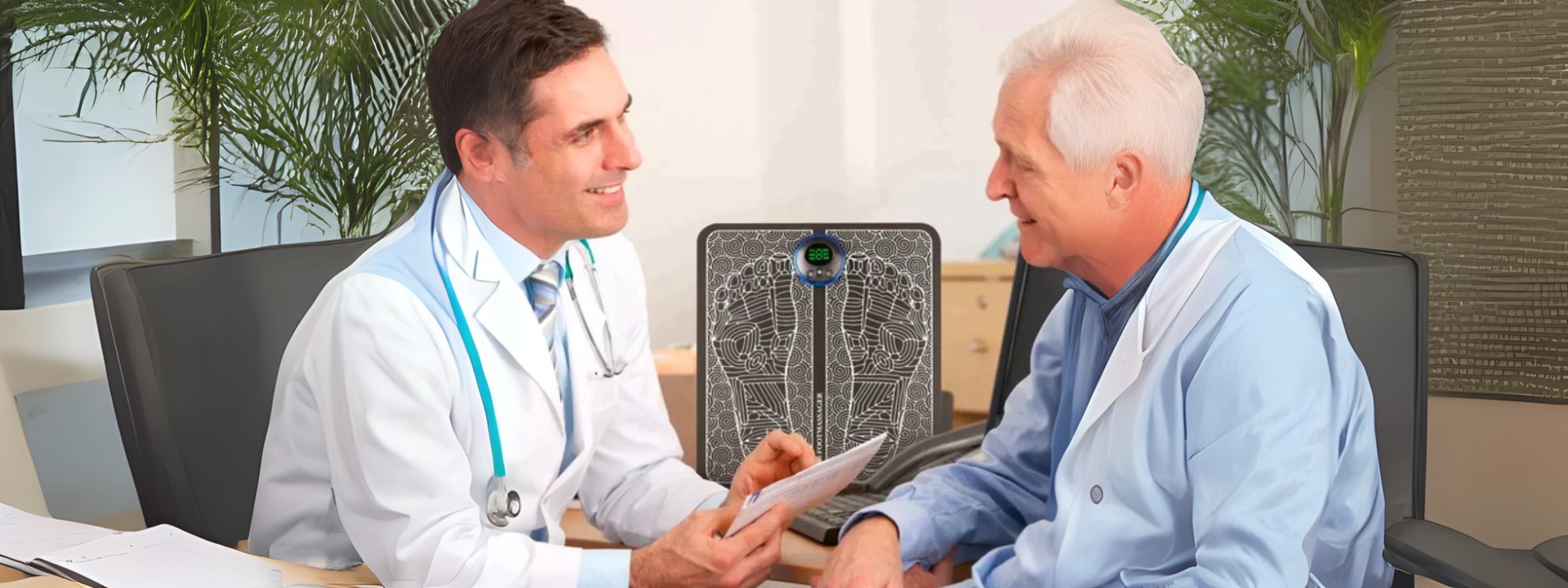 The microcurrent pulses stimulate acupoints in the feet, promoting blood flow and reducing swelling.